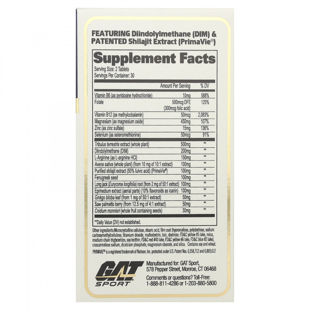 Содержит DIM — сокращенное обозначение 3,3'-дииндолилметана, соединения индол-3-карбинола (I3C) — фитонутриента, поддерживающего баланс эстрогена у мужчин. DIM способствует активности определенных ферментов, которые поддерживают нормальное соотношение эстрогенов и помогают оптимизировать уровень гормона тестостерона. В состав также входит высококачественный ингредиент PrimaVie®.