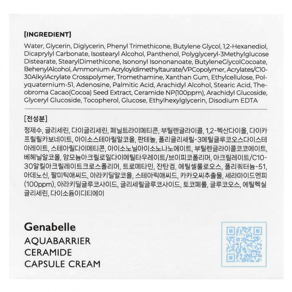 Вода, глицерин, диглицерин, фенилтриметикон, бутиленгликоль, 1,2-гександиол, дикаприлил карбонат, изостеариловый спирт, пантенол, полиглицерил-3метилглюкоза дистеарат, стеарил диметикон, изононил изононаноат, бутиленгликолькокоат, бегениловый спирт, акрилоилдиметилтаурат / пара аммония, акрилаты / c10-30алкилакрилатный кроссполимер, трометамин, ксантановая камедь, этилцеллюлоза, полимкватерниум-51, аденозин, пальмитиновая кислота, арахидиловый спирт, стеариновая кислота, экстракт семян какао (Theobroma cacao), керамид NP (100 част. / млн), арахидиловый глюкозид, глицерил глюкозид, токоферол, глюкоза, этилгексилглицерин, двунатриевая ЭДТК.