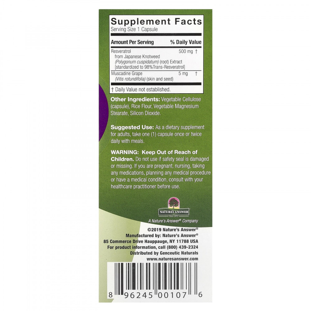 Этот ресвератрол, как и задумано природой, не содержит химических пестицидов и изготовлен из мускадина без ГМО и рейнутрии японской.