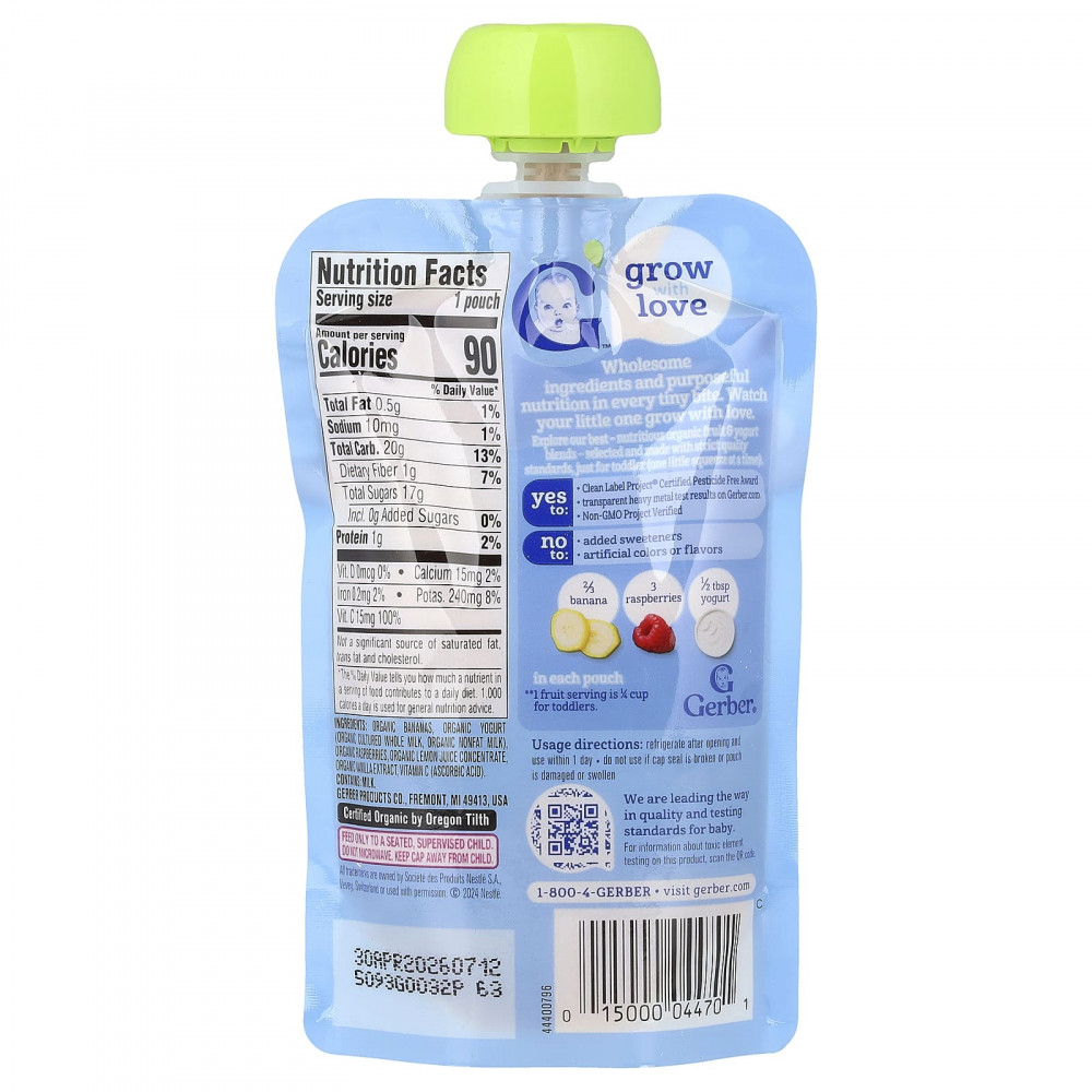 Органические бананы, органический йогурт (органический кисло-молочный продукт, органическое обезжиренное молоко), органическая малина, концентрат органического лимонного сока, органический экстракт ванили, витамин C (аскорбиновая кислота).