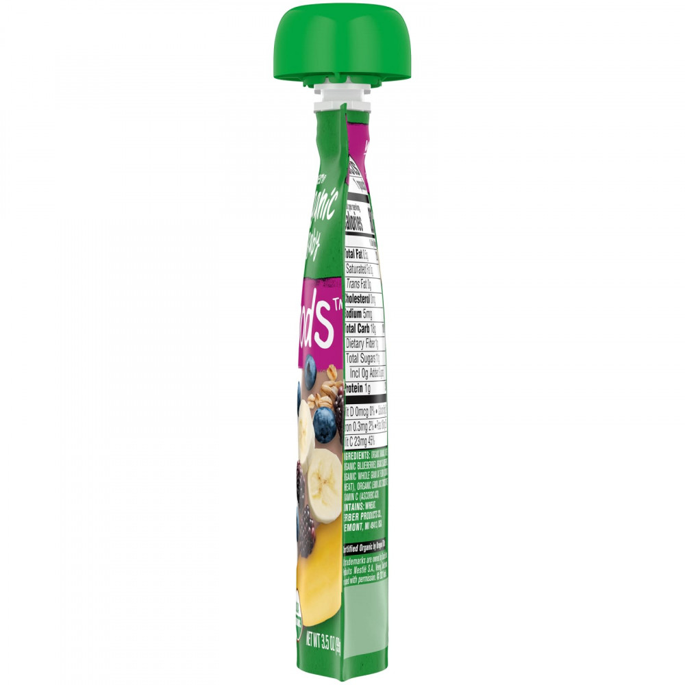 Органические бананы, вода, органическая черника, органическая ежевика, органическая цельнозерновая овсяная мука (содержит пшеницу), концентрат органического лимонного сока, витамин С (аскорбиновая кислота).