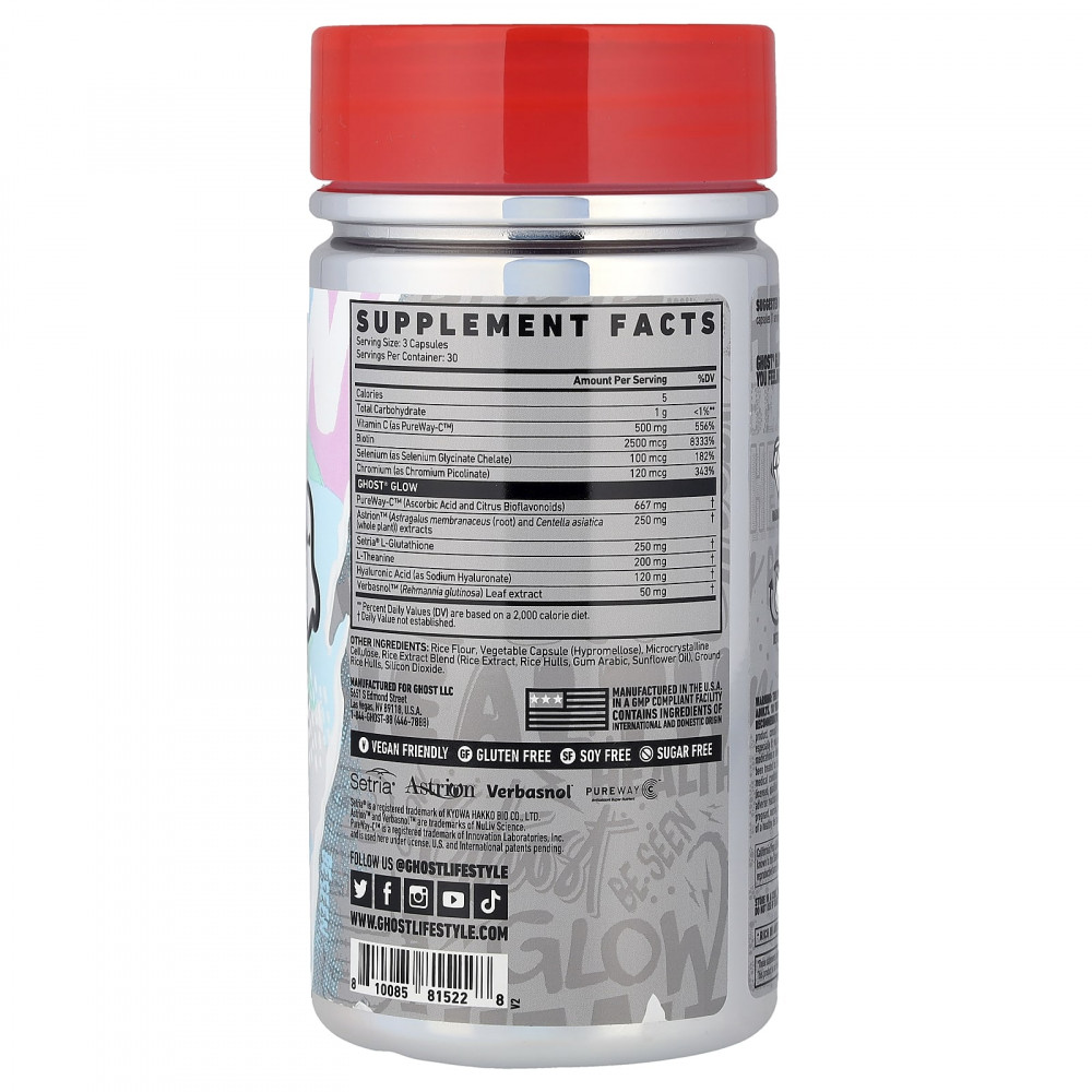 В качестве пищевой добавки принимайте 3 капсулы (1 порцию) GHOST® GLOW в день во время еды, запивая водой.