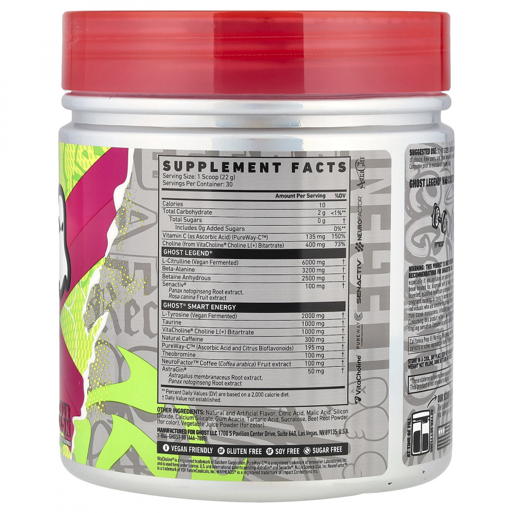 Не превышайте 1 порцию в день. Смешайте 1 мерную ложку (1 порцию) Ghost Legend® с 8–10 унциями воды или напитка по выбору. Новым пользователям, а также тем, кто чувствителен к стимуляторам, следует начать с 1/2 порции (1/2 мерной ложки), чтобы оценить свою переносимость. Принимать добавку необходимо перед тренировкой в дни тренировок.