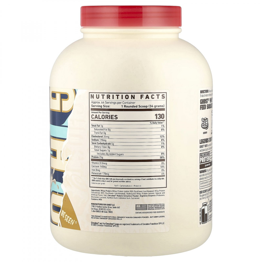 Смешайте каждую мерную ложку (порцию) GHOST® WHEY x CINNABON® с 5–6 унциями воды или напитка по выбору. Варьируйте количество жидкости по вкусу.