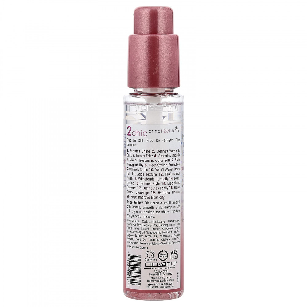 Способ применения 2chic®: Распределите небольшое количество средства на руки, нанесите на влажные или сухие волосы. Уложите на любую сумму — и вы получите великолепные блестящие волосы без пушения.