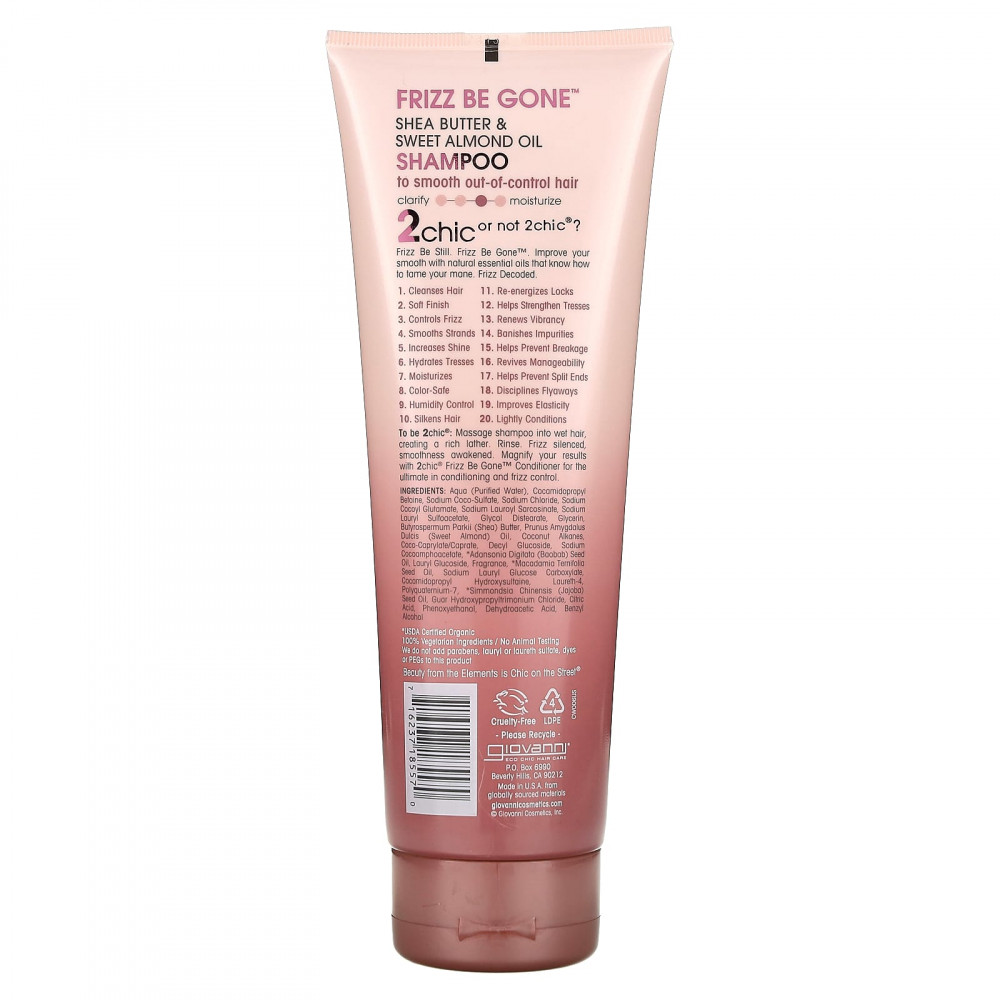 Вмассируйте шампунь в мокрые волосы, создавая густую пену. Смойте водой. Пушистость обуздана, гладкость разбужена. Усильте свои результаты с кондиционером 2chic Frizz Be Gone Conditioner для получения абсолютной победы над пушистостью.