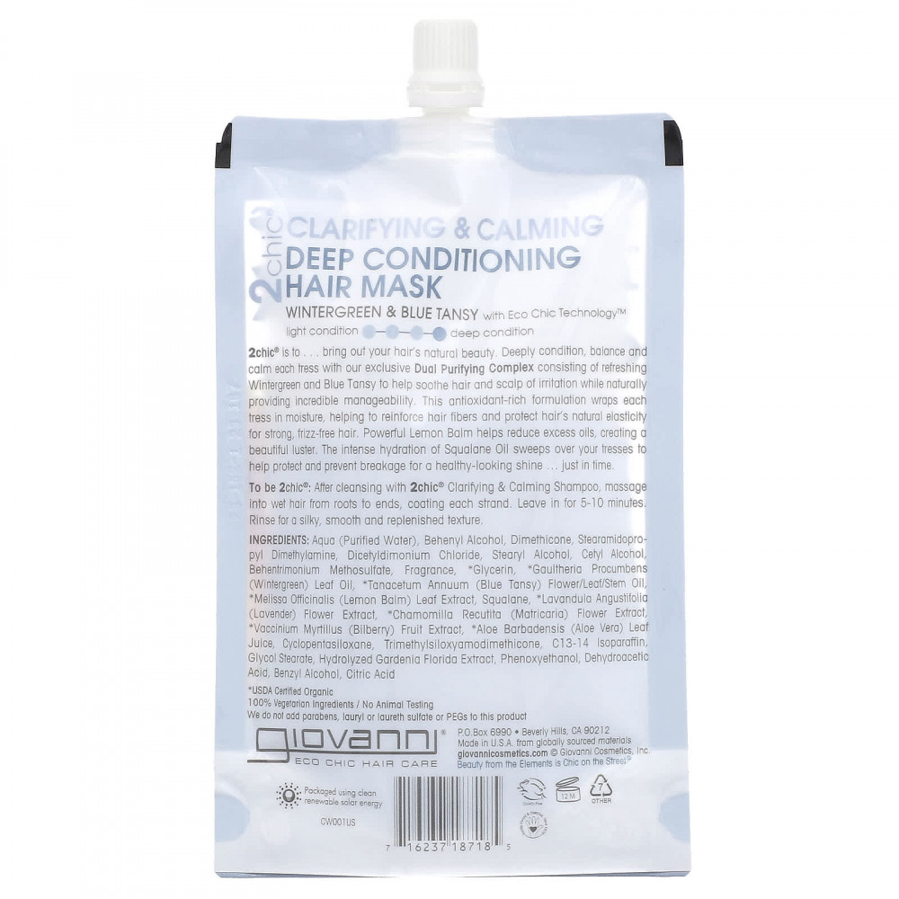 2chic ® — это... естественная красота ваших волос. Наш эксклюзивный двойной очищающий комплекс, состоящий из освежающих грушанки и голубой пижмы, помогает успокоить, сбалансировать и успокоить каждую прядь, которая помогает успокоить раздраженные волосы и кожу головы, обеспечивая невероятную послушность. Этот богатый антиоксидантами состав обволакивает каждую прядь влагой, помогая укрепить волокна волос и сохранить естественную эластичность волос. Делая их более сильными, гладкими и здоровыми. Мощное действие мелиссы лекарственной помогает избавиться от избыточного жира, придавая волосам красивый блеск. Сквалановое масло глубоко увлажняет ваши волосы, помогая защитить их и предотвращая их ломкость, придавая волосам здоровый блеск… как раз вовремя.
