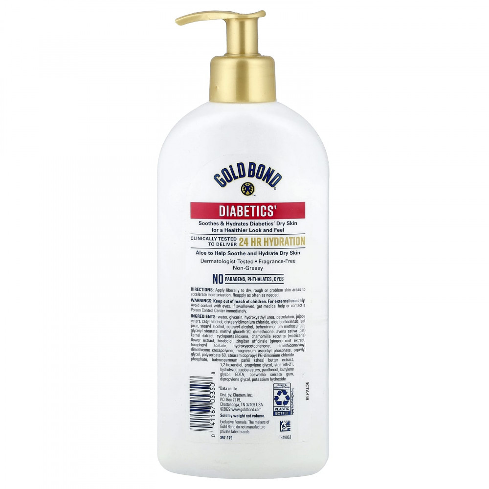 Увлажняет сухую, шелушащуюся и огрубевшую кожу диабетиков. Лосьон для уменьшения сухости кожи от Gold Bond Diabetics обеспечивает мгновенное успокаивание и увлажнение на весь день. Он разглаживает огрубевшие участки кожи и проникает в 10 поверхностных слоев вглубь. 9 из 10 диабетиков отметили заметное улучшение состояния кожи уже через 1 час.
