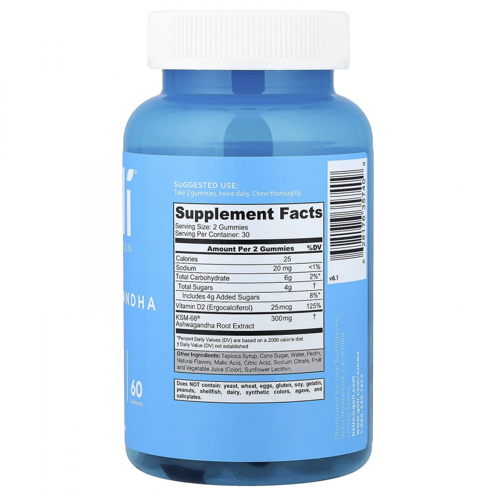 Наши жевательные таблетки с ашвагандой от Goli® изготовлены из клинически изученной ашваганды KSM-66®. Этот экстракт, полученный исключительно из корней, помогает снизить уровень кортизола, способствуя здоровой реакции на повседневный стресс, а также поддерживает некоторые аспекты памяти и концентрации, качество сна и многое другое. Ашваганда — это древнее растение, которое веками использовалось для поддержания здоровья, помогая организму расслабиться, восстановиться и снять напряжение.