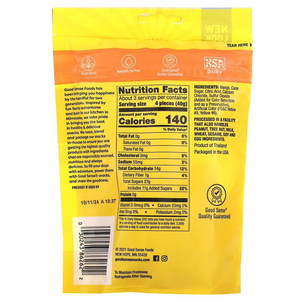 Манго, тростниковый сахар, лимонная кислота, хлорид кальция, диоксид серы (добавлен для сохранения цвета и в качестве консерванта: искусственный краситель (желтый 5 FD&C), желтый № 6).