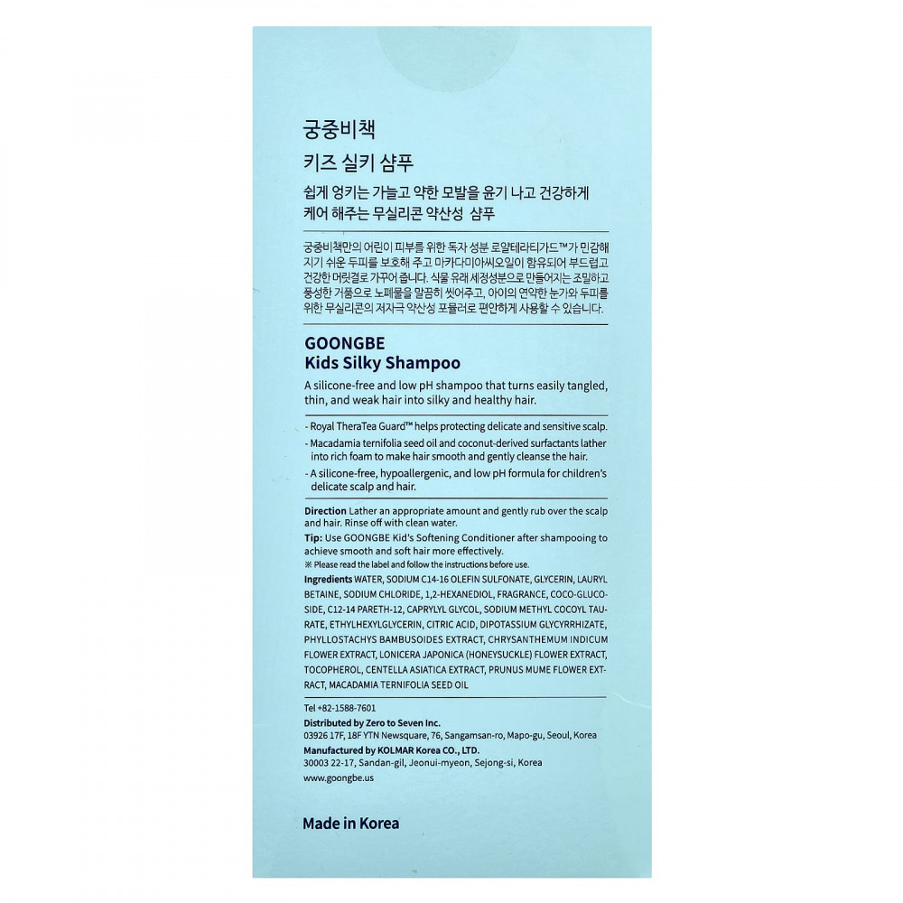 Подсказка. Используйте смягчающий кондиционер Goongbe Kid после мытья головы, чтобы волосы стали более гладкими и мягкими.