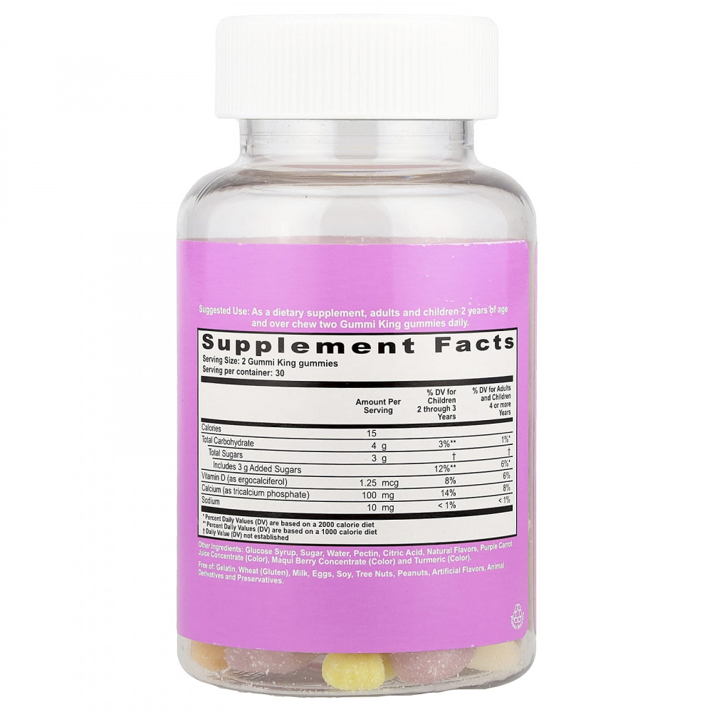 Кальций и витамин D от GummiKing™ необходимы для здоровья костей и развития растущих детей. Кальций способствует укреплению и поддержанию здоровья костей, а витамин D необходим для усвоения кальция. Витамин D также помогает поддерживать общее здоровье иммунной системы и всего организма.