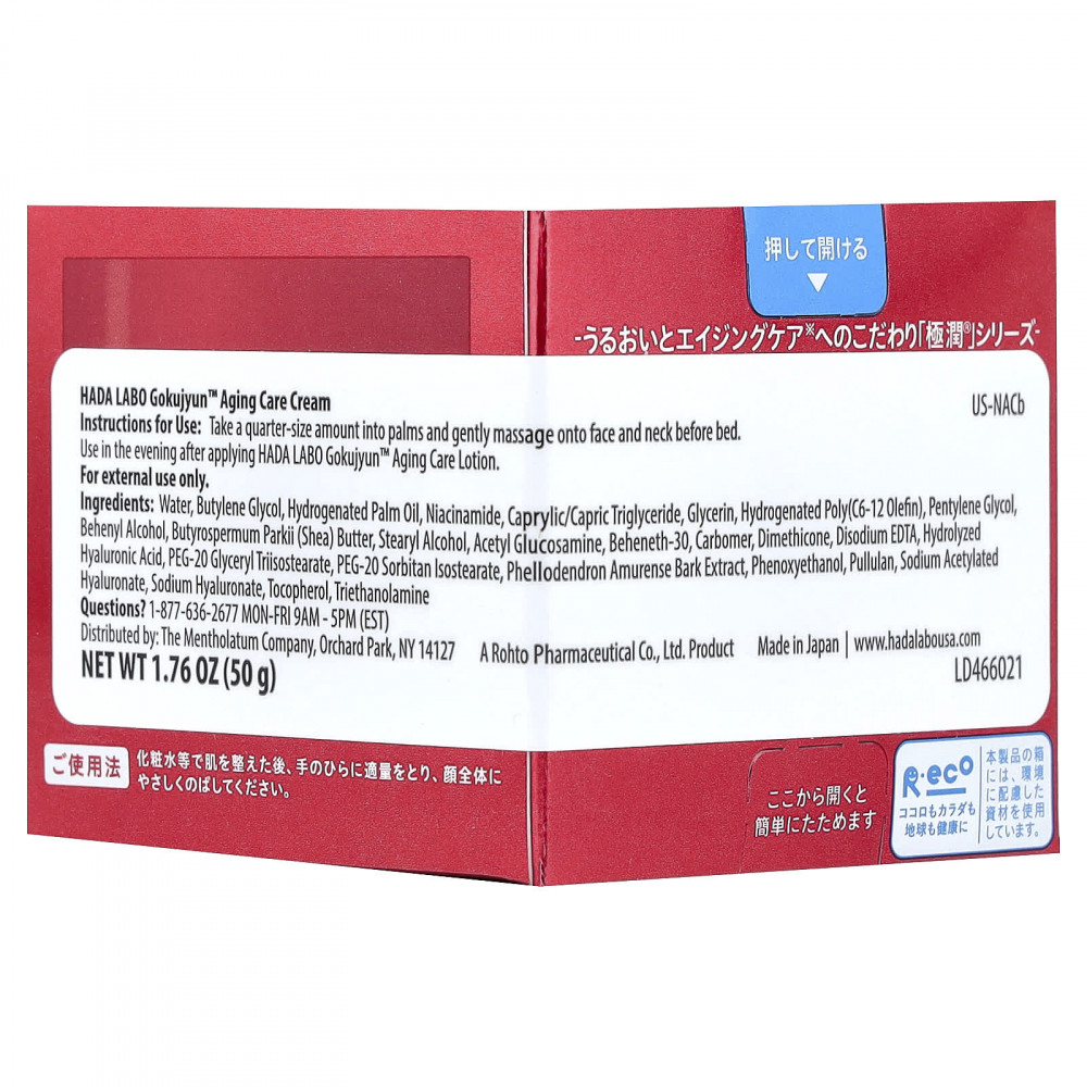 Возьмите с четвертую часть средства в ладонях и аккуратно нанесите на лицо и шею перед сном. Используйте вечером после нанесения лосьона для ухода за кожей HADA LABO Gokujyun™.