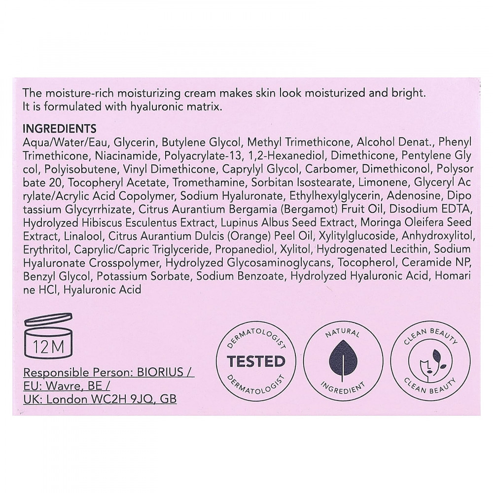 Насыщенный увлажняющий крем делает кожу увлажненной и сияющей. Содержит гиалуроновую матрицу.