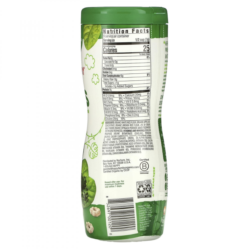 + Пуховки Happy Baby, 60 г (2,1 унции) содержат на 40% больше пуховок, чем органические пуховки Gerber, 42 г (1,48 унции).