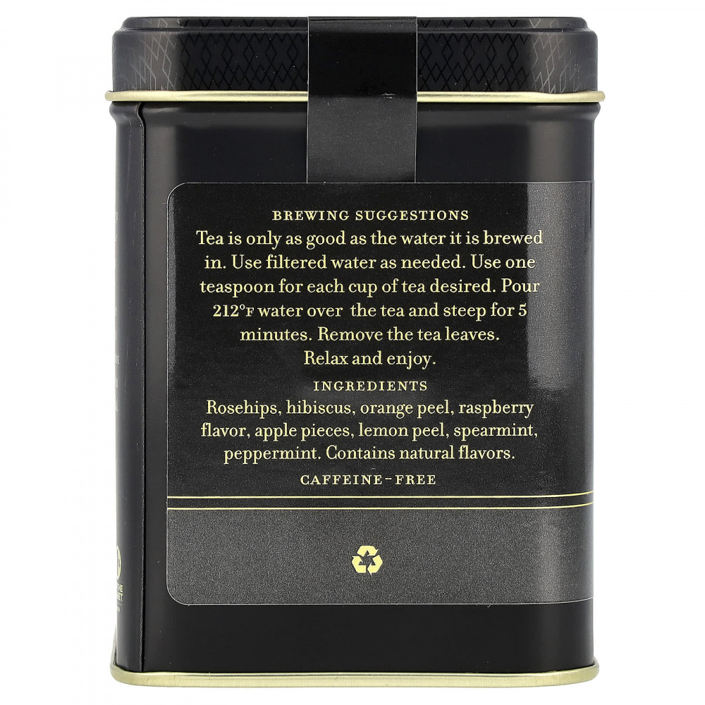 Шиповник, гибискус, апельсиновая цедра, малиновый вкус, кусочки яблока, цедра лимона, мята колосистая, перечная мята. Содержит натуральные ароматизаторы.