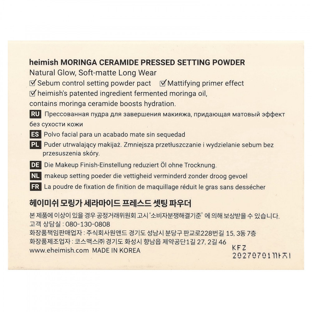 Запатентованный ингредиент Heimish — ферментированное масло моринги — содержит керамид из моринги, который способствует увлажнению.