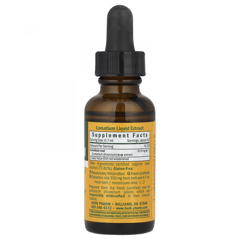 Приготовлено из свежего (не сушеного) корня растения Lomatiumiskum, выращенного в дикой природе в естественной среде обитания.
