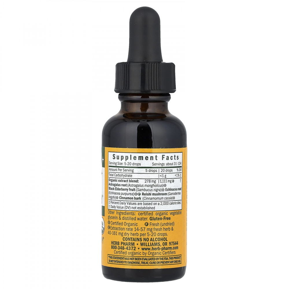 | Смесь органических экстрактов: Корень астрагала (Astragalus mongholicus)O, плоды черной бузины (Sambucus nigra)O, корень эхинацеи (Echinacea purpurea)OF, гриб рейши (Ganoderma lingzhi)O, кора корицы (Cinnamomum cassia)O | 278 мг | 1111 мгE | † |