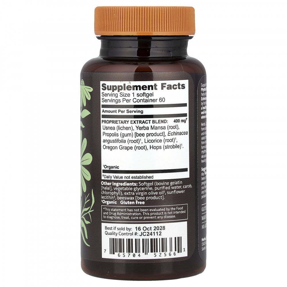 Поддержите здоровье дыхательных путей и пищеварительной системы с помощью Phytocillin®, концентрированной травяной смеси с уснеей, анемопсисом калифорнийским и эхинацеей узколистной (Echinacea angustifolia). Эти растительные ингредиенты, традиционно используемые травниками, помогают поддерживать здоровую иммунную реакцию и способствуют здоровью лёгких и пищеварительного тракта, когда это больше всего нужно.