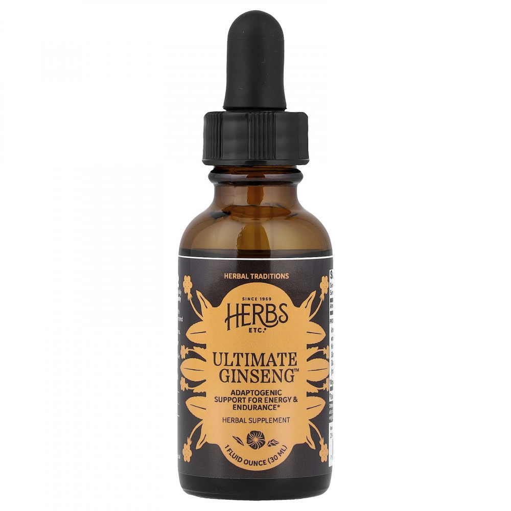 Повысьте выносливость и упругость с помощью Ultimate Ginseng™, динамичной смеси американского и азиатского женьшеня, а также корня сибирского элеутерококка. Эти адаптогенные травы традиционно используются для поддержания уровня энергии и помогают организму приспособиться к периодическим физическим и умственным нагрузкам. Компания Herbs, Etc. с заботой разрабатывает травяные формулы на основе многолетнего опыта, используя проверенные временем процессы и правильные травы в максимальной эффективности для поддержки естественного ритма вашего организма.