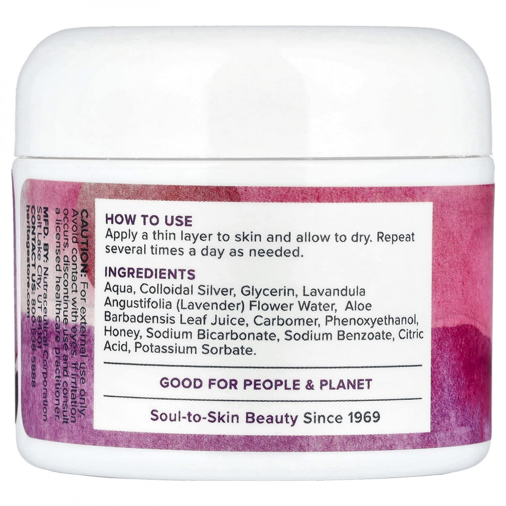 Вода, коллоидное серебро, глицерин, вода из цветков лаванды (Lavandula angustifolia), сок из листьев алоэ вера (Aloe barbadensis), карбомер, феноксиэтанол, мёд, бикарбонат натрия, бензоат натрия, лимонная кислота, сорбат калия.