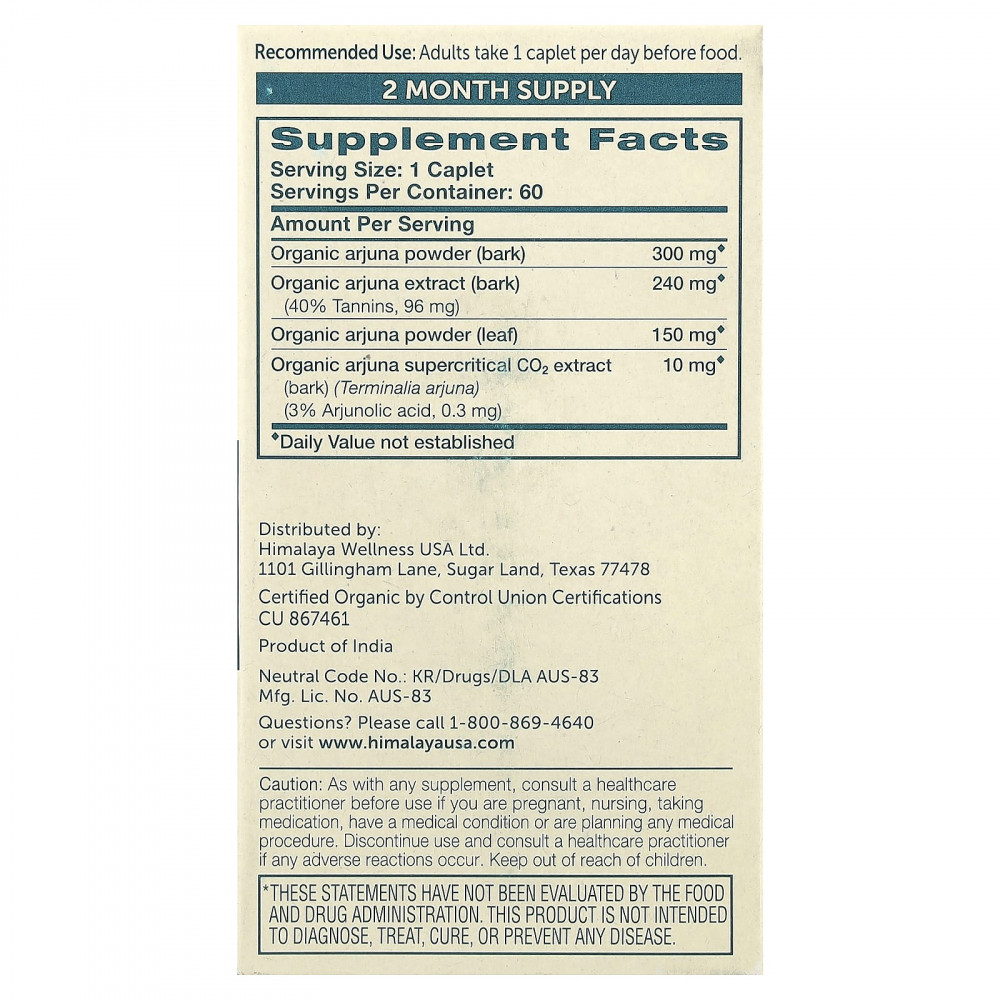 | Порошок из листьев органической арджуны | 150 мг | * |