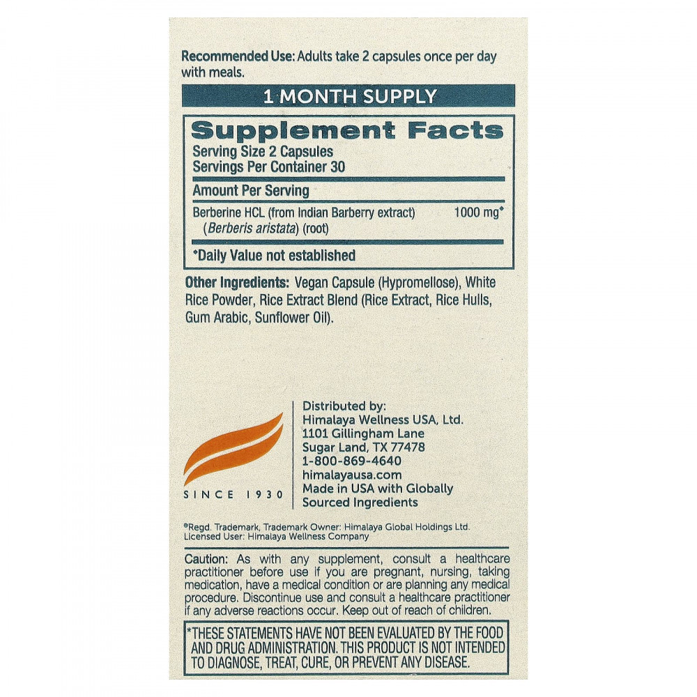 Берберин Himalaya содержит 1000 мг гидрохлорида берберина, полученного из корня барбариса, в каждой порции из 2 капсул. Берберин Himalaya - это простой способ добавить немного растительного наследие в ваш ежедневный рацион.