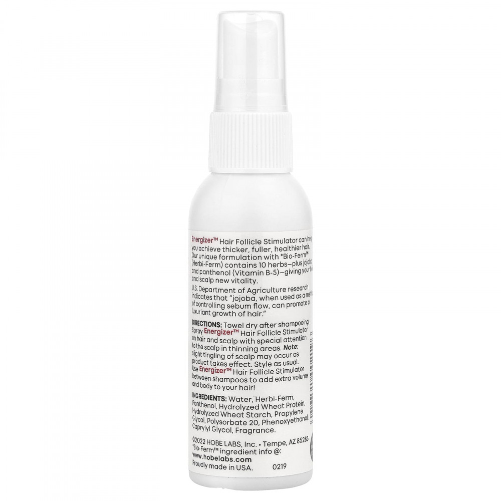 Стимулятор волосяных фолликулов Energizer™ поможет вам сделать волосы более густыми, объёмными и здоровыми. Наша уникальная формула с Bio-Ferm™ (Herbi-Ferm) содержит 10 трав, а также жожоба и пантенол (витамин B5), которые придают волосам и коже головы новую жизненную силу.