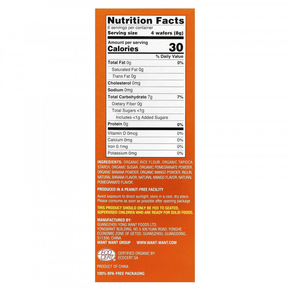 Органическая рисовая мука, органический тапиоковый крахмал, органический сахар, органический рисовый протеин, органический гранатовый порошок, органический банановый порошок, органический порошок манго, инулин, натуральный ароматизатор «Банан», натуральный ароматизатор «Манго», натуральный ароматизатор «Гранат».