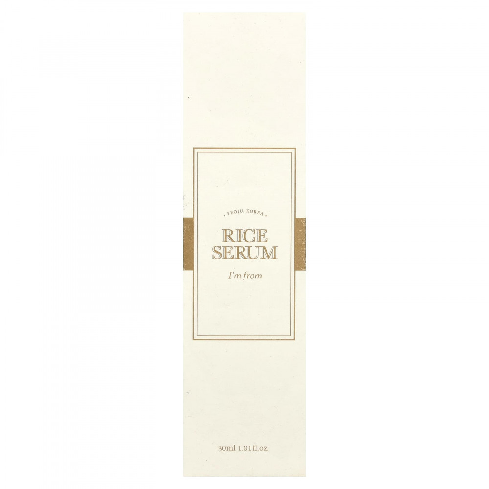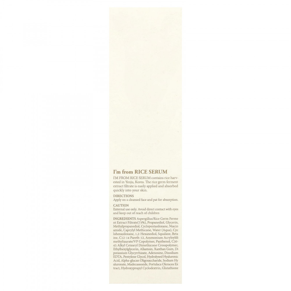 Сыворотка с экстрактом риса I'M FROM содержит рис, собранный в Йоджу, Корея. Фильтрат экстракта ферментированных ростков риса легко наносится и быстро впитывается в кожу.