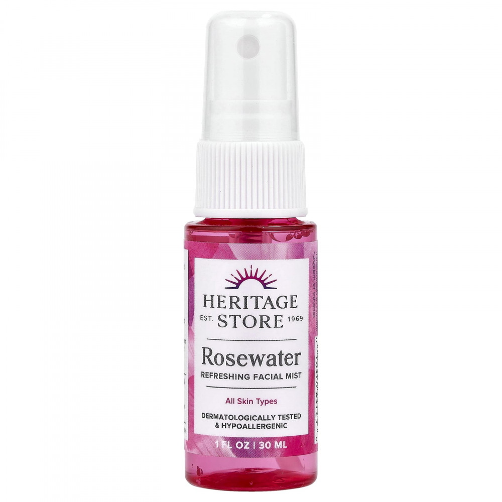 Heritage Store, розовая вода, освежающий спрей для лица