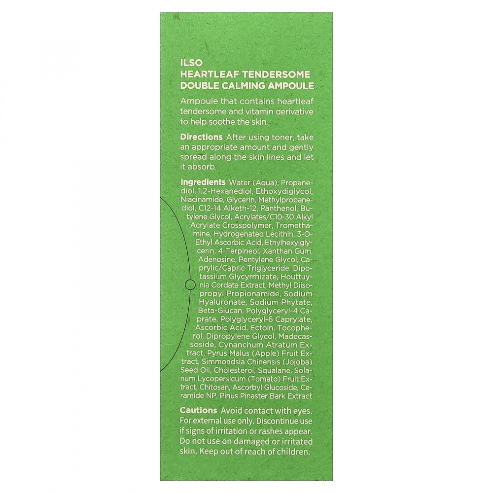 Вода, пропандиол, 1,2-гександиол, этоксидигликоль, никотинамид, глицерин, метилпропандиол, c12-14 алкет-12, пантенол, бутиленгликоль, акрилат/c10-30 алкил акрилат кроссполимер, трометамин, гидрогенизированный лецитин, 3-O-этил-аскорбиновая кислота, этилгексилглицерин, 4-терпинеол, ксантановая камедь, аденозин, пентилен гликоль, каприловый/каприновый триглицерид, дикалия глицирризат, экстракт хауттюйнии (Houttuynia cordata), метил диизопропил пропионамид, гиалуронат натрия, фитат натрия, бета-глюкан, полиглицерил-4 капрат, полиглицерил-6 каприлат, аскорбиновая кислота, эктоин, токоферол, дипропиленгликоль, мадекассосид, экстракт цинанхума (Cynanchum atratum), экстракт яблока (Pyrus malus), масло из семян жожоба (Simmondsia chinensis), холестерина, сквалан, экстракт плодов томата (Solanum lycopersicum), хитозан, аскорбил глюкозид, керамид NP, экстракт коры хвои сосны приморской (Pinus pinaster).