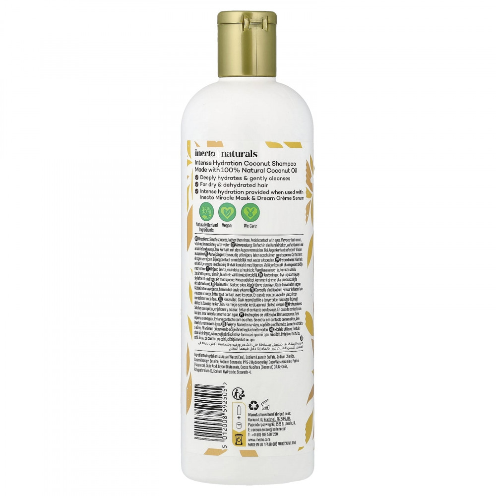 Шампунь с кокосом для интенсивного увлажнения, содержит 100% натуральное кокосовое масло