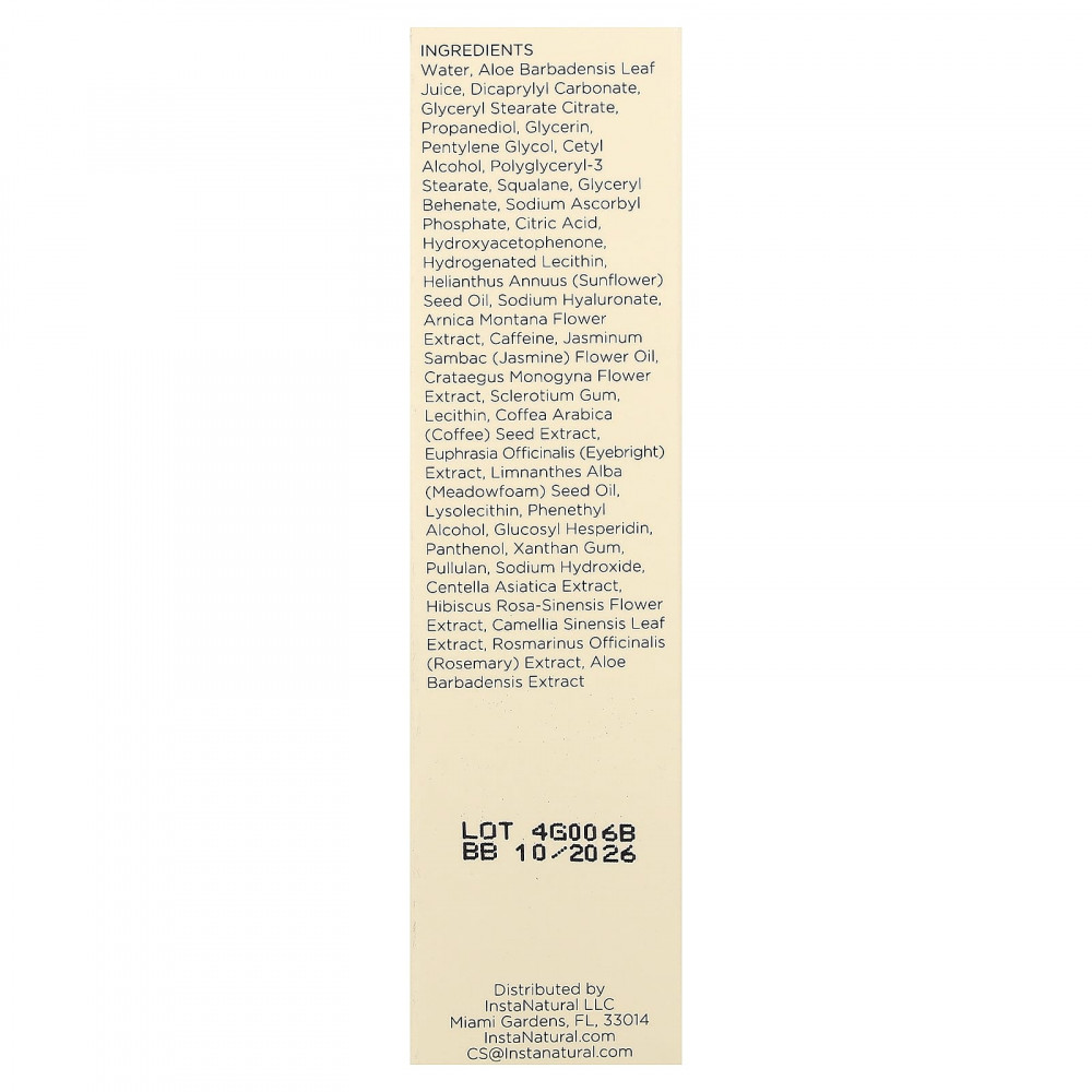 Вода, сок из листьев алоэ вера (Aloe barbadensis), дикаприлил карбонат, глицерил стеарат цитрат, пропандиол, глицерин, пентилен гликоль, цетиловый спирт, полиглицерил-3 стеарат, сквалан, глицерил бегенат, аскорбил фосфат натрия, лимонная кислота, гидроксиацетофенон, гидрогенизированный лецитин, подсолнечное масло (Helianthus annuus), гиалуронат натрия, экстракт цветков арники (Arnica montana), кофеин, масло из цветков жасмина (Jasminum sambac), экстракт цветков боярышника (Crataegus monogyna), смола склероций, лецитин, экстракт зерен кофе арабики (Coffea arabica), экстракт очанки (Euphrasia officinalis), масло из семян пенника лугового (Limnanthes alba), лизолецитин, фенетиловый спирт, глюкозил гесперидин, пантенол, ксантановая камедь, пуллулан, гидроксид натрия, экстракт готу колы (Centella asiatica), экстракт цветков гибискуса китайского (Hibiscus rosa-sinensis), экстракт листьев зелёного чая (Camellia sinensis), экстракт розмарина (Rosmarinus officinalis), экстракт алоэ вера (Aloe barbadensis).
