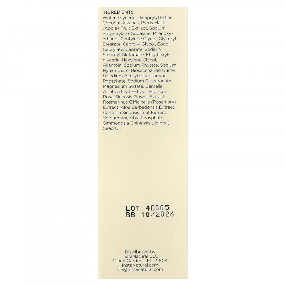 Вода, глицерин, дикаприлиловый эфир, алканы из кокоса, экстракт яблока (Pyrus malus), полиакрилат натрия, сквалан, феноксиэтанол, пентилен гликоль, глицерил стеарат, каприлилгликоль, коко-каприлат/капрат, натрия стеароил глутамат, этилгексилглицерин, гексиленгликоль, аллантоин, фитат натрия, гиалуронат натрия, биосахаридная смола-1, динатрия ацетилглюкозамина фосфат, глюкуронат натрия, сульфат магния, экстракт листьев готу колы (Centella asiatica), экстракт цветков гибискуса китайского (Hibiscus rosa-sinensis), экстракт розмарина (Rosmarinus officinalis), экстракт алоэ вера (Aloe barbadensis), экстракт листьев зелёного чая (Camellia sinensis), аскорбил фосфат натрия, масло семян жожоба (Simmondsia chinensis).