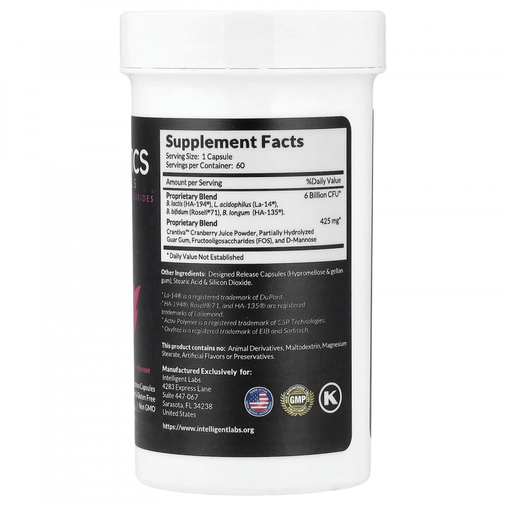 | Запатентованная смесь Порошок из клюквенного сока Cantiva™, частично гидролизованная гуаровая камедь, фруктоолигосахариды (ФОС) и D-манноза | 425 мг | * |
