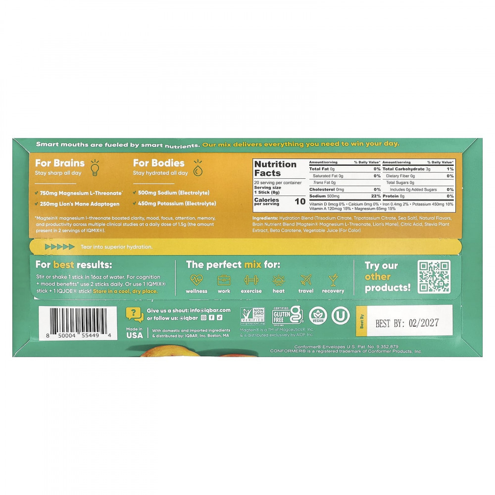 Рекомендация для достижения оптимальных результатов: Размешайте или встряхните 1 стик в 480 мл (16 унциях) воды. Для улучшения когнитивных функций и настроения принимайте 2 стика в день. Или используйте 1 стик IQMIX® и 1 стик IQJOE®!