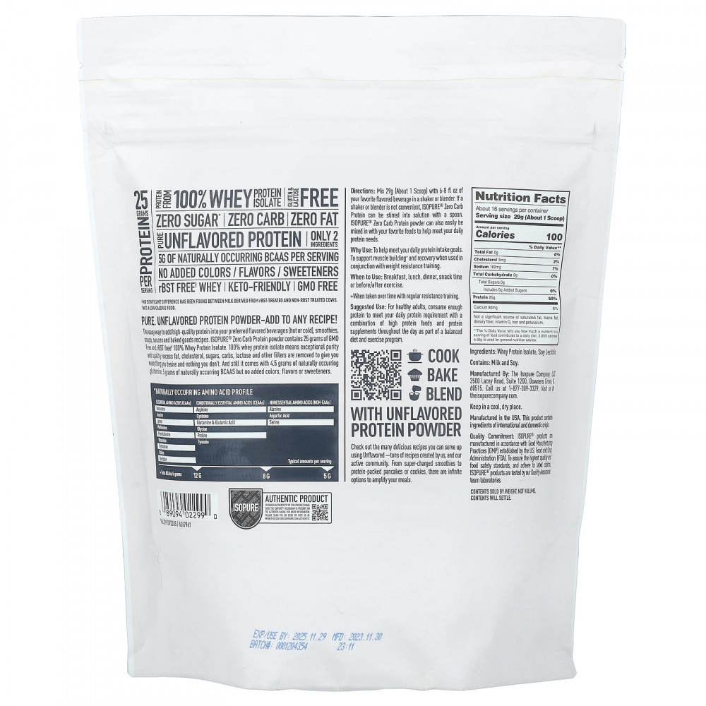 Простой способ добавить высококачественный протеин в любимые ароматизированные напитки (горячие или холодные), смузи, супы, соусы и выпечку. Протеиновый порошок ISOPURE® с нулевым содержанием углеводов содержит 25 г 100% изолята сывороточного протеина без ГМО и рБСТ‡. 100% изолят сывороточного протеина означает исключительную чистоту и качество: излишки жира, холестерина, сахара, углеводов, лактозы и других наполнителей удаляются, чтобы дать вам всё необходимое и ничего лишнего. При этом он содержит 4,5 грамма глутамина природного происхождения, 5 граммов BCAA природного происхождения и производится без добавления красителей, ароматизаторов и подсластителей.