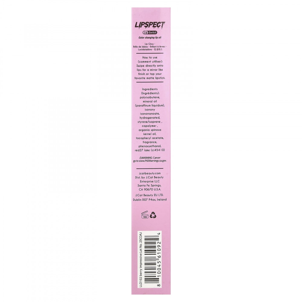 Масло для губ, меняющее цвет, от Lipspect — это питательное масло для губ, обогащенное аргановым маслом, которое увлажняет и смягчает губы. Легкая нелипкая формула обеспечивает блестящий финиш и меняет цвет в зависимости от уникального уровня pH и температуры, создавая ваш уникальный оттенок. Наслаждайтесь гладкими и увлажненными губами, которые кажутся более пухлыми и сочными с каждым использованием.
