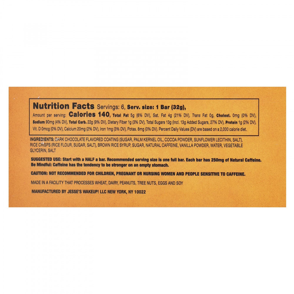 Jesse's WakeUP! Батончик — это хрустящий батончик с темным шоколадом и рисом, который содержит 250 мг кофеина растительного происхождения и создан с одной целью: WakeUP! В любое время и в любом месте.