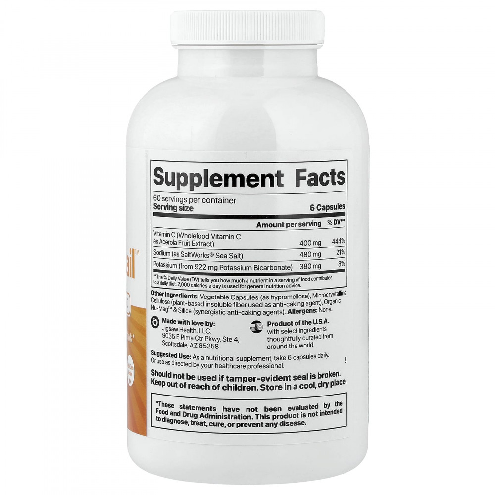 Добавка Adrenal Cocktail™ от Jigsaw Adrenal Cocktail™ содержит 400 мг витамина C из цельных продуктов с бикарбонатом калия и морской солью SaltWorks® в уникальной формуле, предназначенной для поддержки здоровой работы надпочечников.
