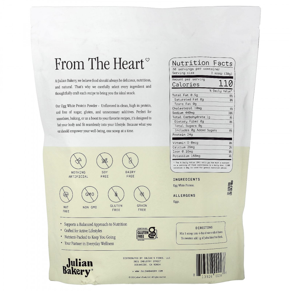 Наш протеиновый порошок из яичного белка без добавок — это чистый продукт с высоким содержанием белка, без сахара, глютена и ненужных добавок. Этот продукт идеально подходит для смузи, выпечки или в качестве добавки к вашим любимым рецептам. Он разработан, чтобы зарядить ваш организм энергией и органично вписаться в ваш образ жизни. Потому что то, что вы едите, должно укреплять ваше здоровье, по одной мерной ложке за раз.