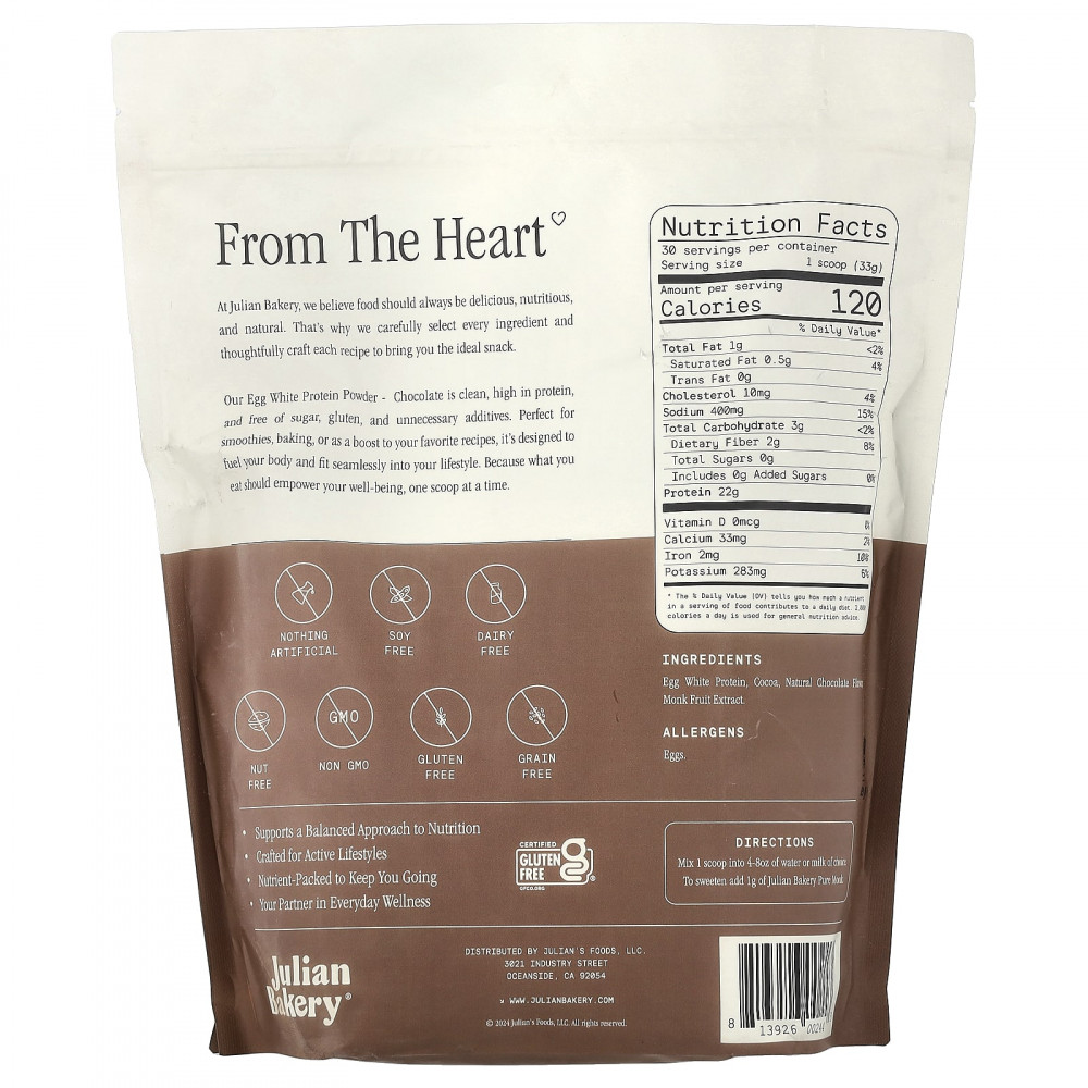 Протеиновый порошок Paleo Thin от Julian Bakery — это 100% яичный белок, полученный на яичных фермах, где куры выращиваются без использования гормонов и антибиотиков. Это действительно чистая форма протеина, не содержащая глютена, ГМО, сыворотки и сои.