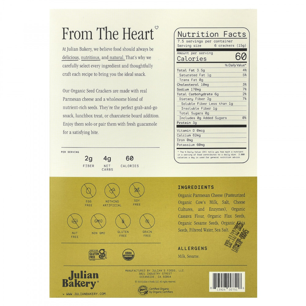 Наши крекеры с органическими семенами изготовлены из настоящего сыра пармезан и полезной смеси богатых питательными веществами семян. Это идеальный снек, ланчбокс или мясное ассорти. Ешьте их соло или сочетайте со свежим гуакамоле.