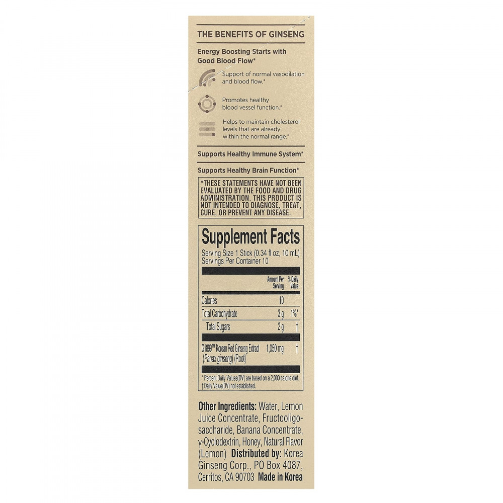 Перед применением добавки во время беременности, кормления грудью или приема препаратов следует проконсультироваться с медицинским работником. Убедитесь в отсутствии аллергии и побочных реакций на каждый ингредиент. Употребить сразу после открытия. Содержит экстракт корня корейского красного женьшеня, выращенного менее 6 лет назад. Хранить в сухом и прохладном месте, избегать попадания солнечных лучей и влаги. Может наблюдаться осадок, он абсолютно безвреден и не влияет на эффективность и качество средства. Не нагревайте стик в микроволновой печи. Осторожно обращайтесь с рваными краями.