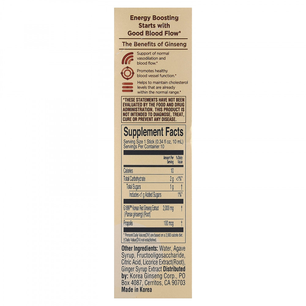 Перед применением добавки во время беременности, кормления грудью или приема препаратов следует проконсультироваться с медицинским работником. Убедитесь в отсутствии аллергии и побочных реакций на каждый ингредиент. Употребить сразу после открытия. Содержит экстракт корня корейского красного женьшеня, выращенного не более 6 лет. Хранить в сухом и прохладном месте, избегать попадания солнечных лучей и влаги. Может наблюдаться осадок, он абсолютно безвреден и не влияет на эффективность и качество средства. Не нагревайте стик в микроволновой печи. Осторожно используйте рваные края.