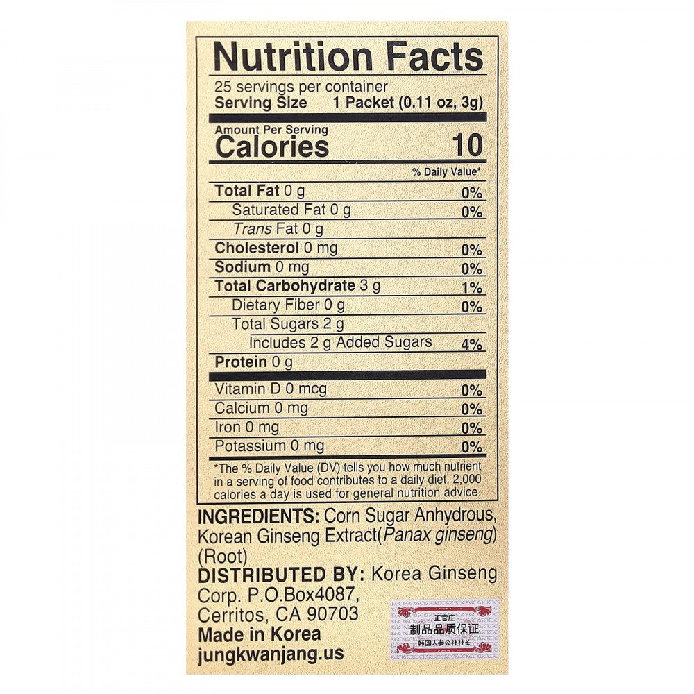 Кукурузный сахар безводный, Экстракт корня женьшеня обыкновенного (Panax ginseng).