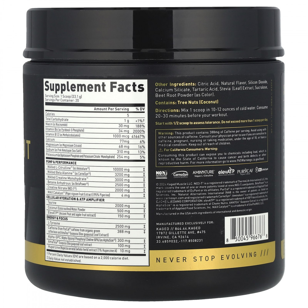 Это не обычная предтренировочная программа. Pre-Workout Elite - для тех, кто хочет только самого лучшего. Он полностью загружен и идеально разработан, чтобы дать вам больше энергии, сосредоточенности, накачки и мощности, чем когда-либо прежде. Вы сможете тренироваться усерднее, делать больше повторений, оставаться на пике во время длительных тренировок и преодолевать плато тренировок. Это не для слабонервных, но после перехода на Кагед ваши тренировки никогда не будут прежними.