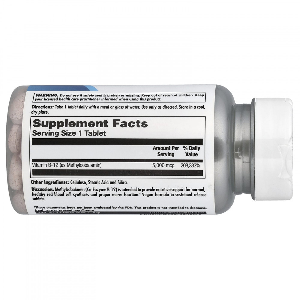 Описание. Метилкобаламин (коэнзим B12) обеспечивает питательную поддержку для нормального синтеза эритроцитов и нормальной работы нервной системы. Веганская формула в таблетках с замедленным высвобождением.